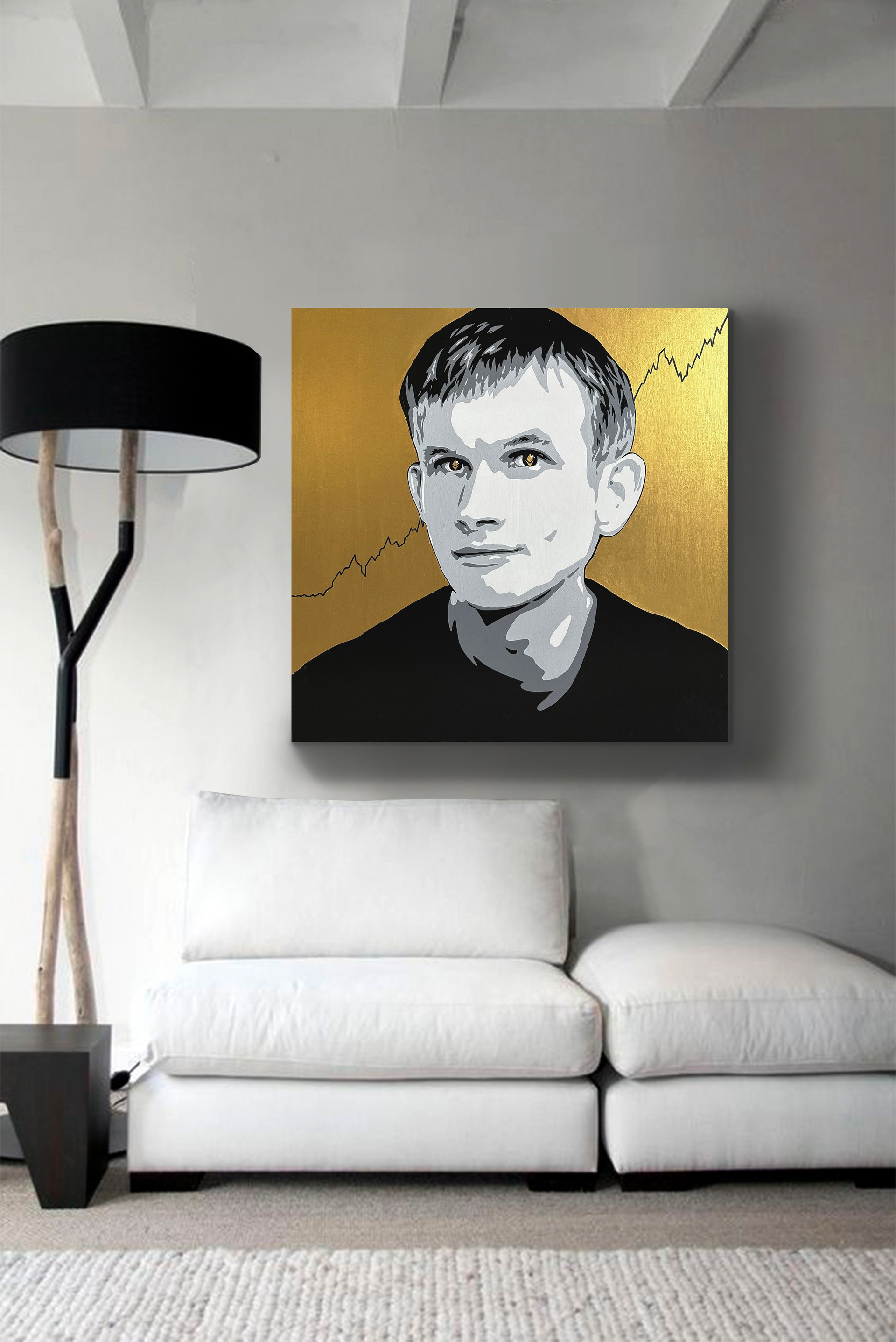 На картине изображен создатель Ethereum Виталик Бутерин в проекте «Герои криптовалюты»