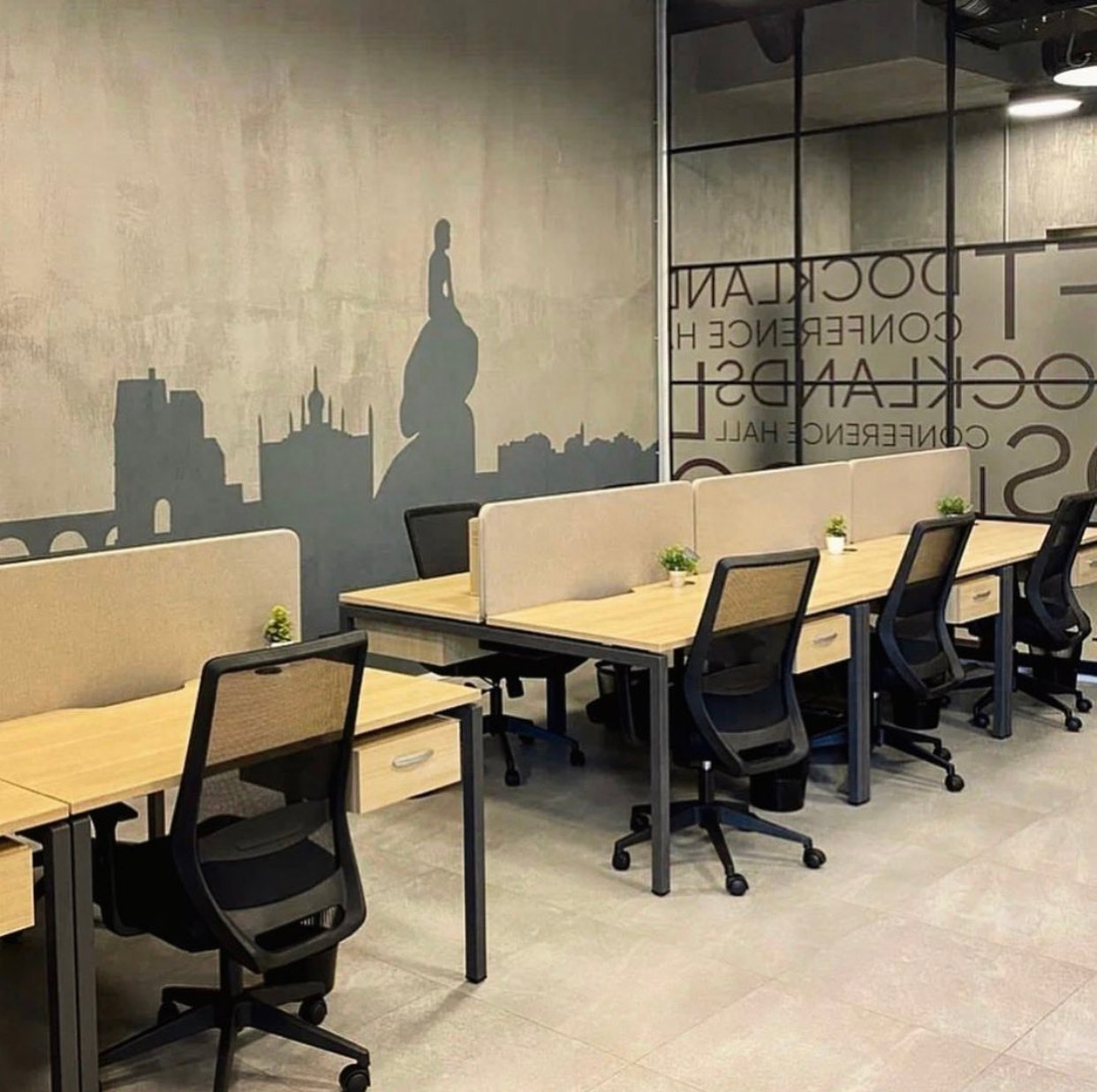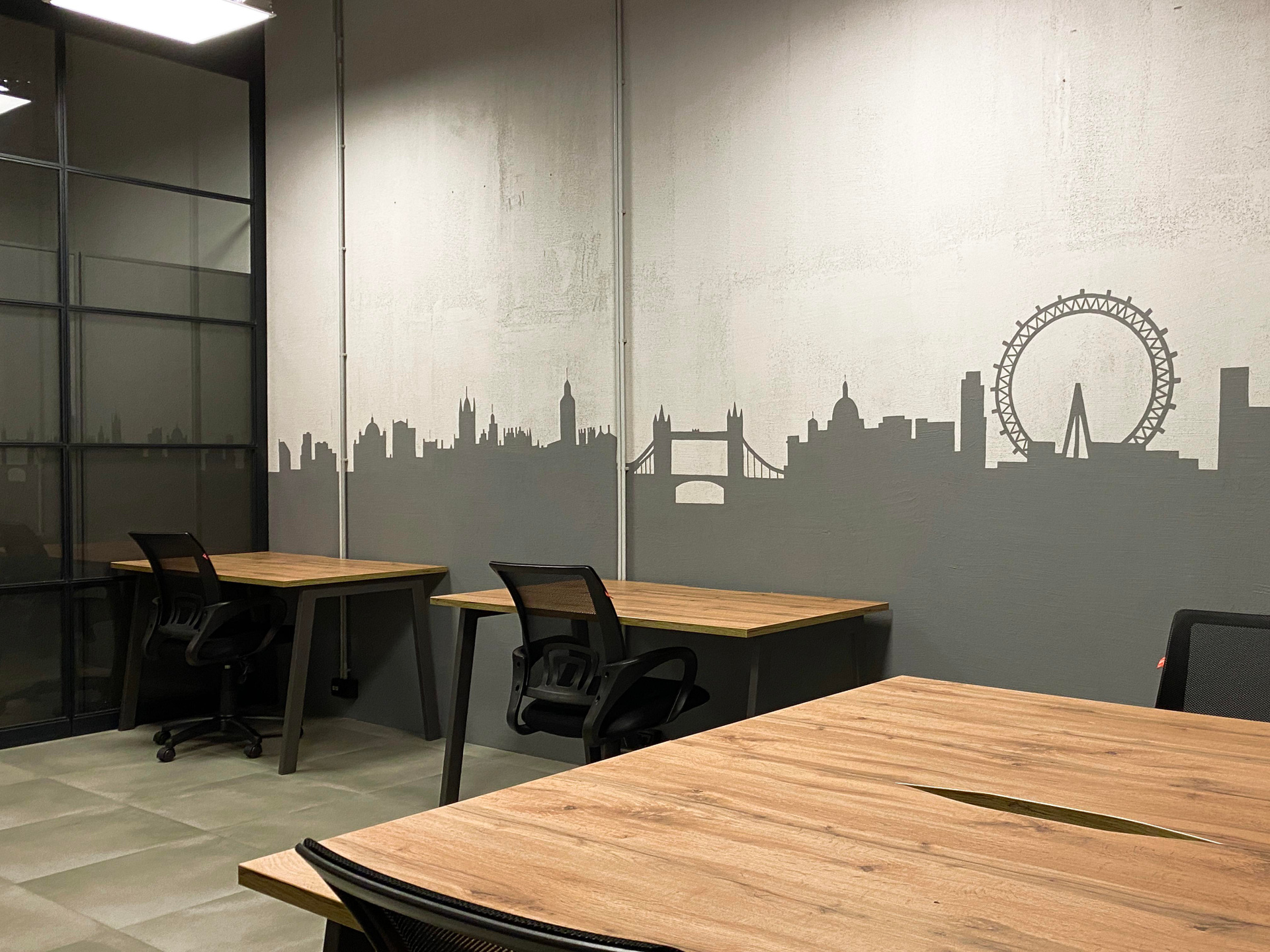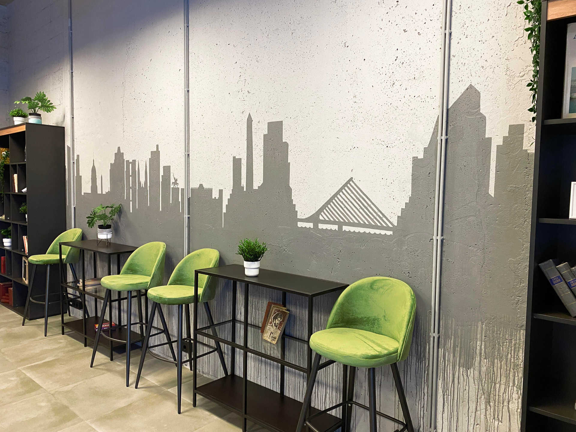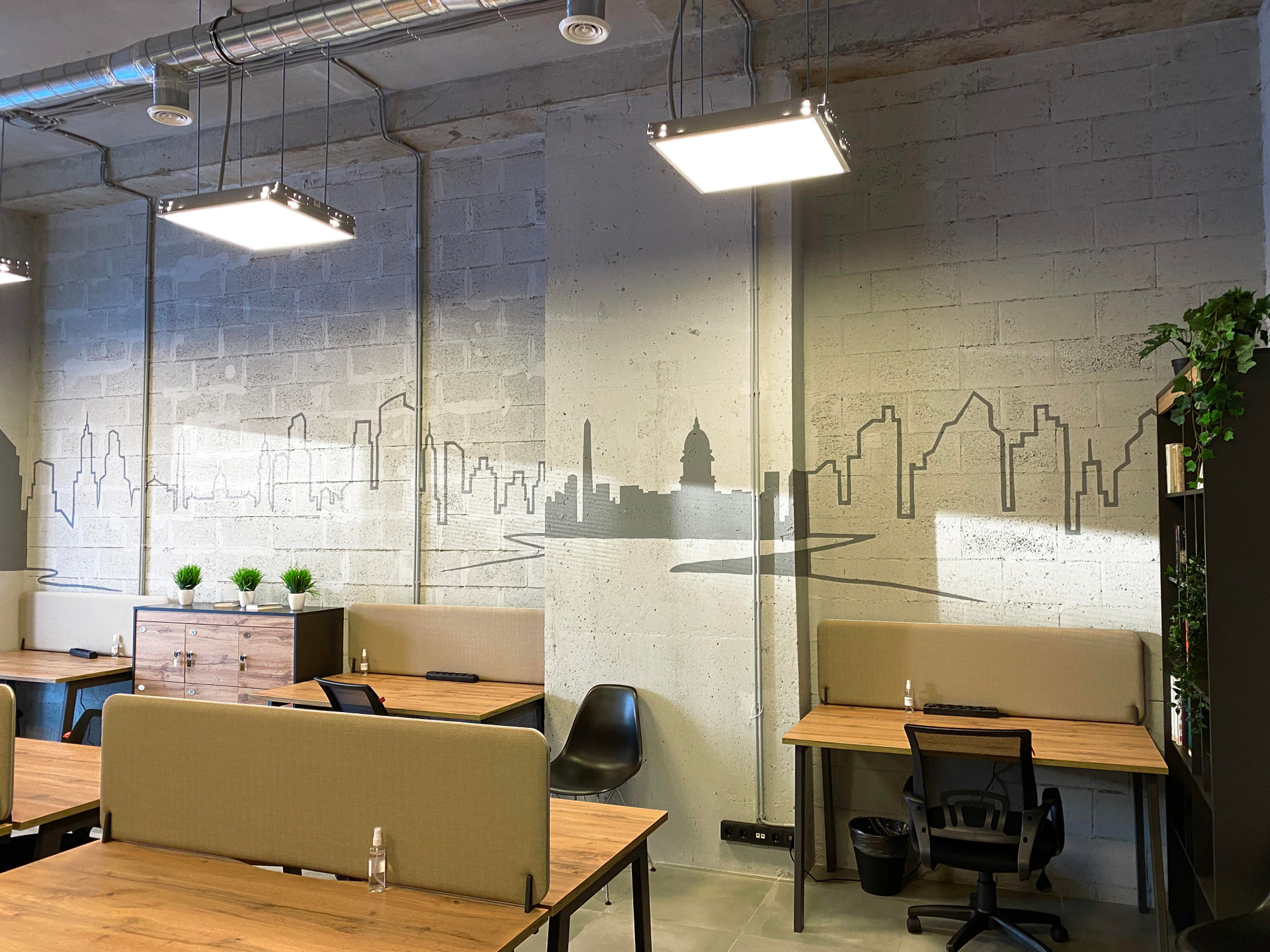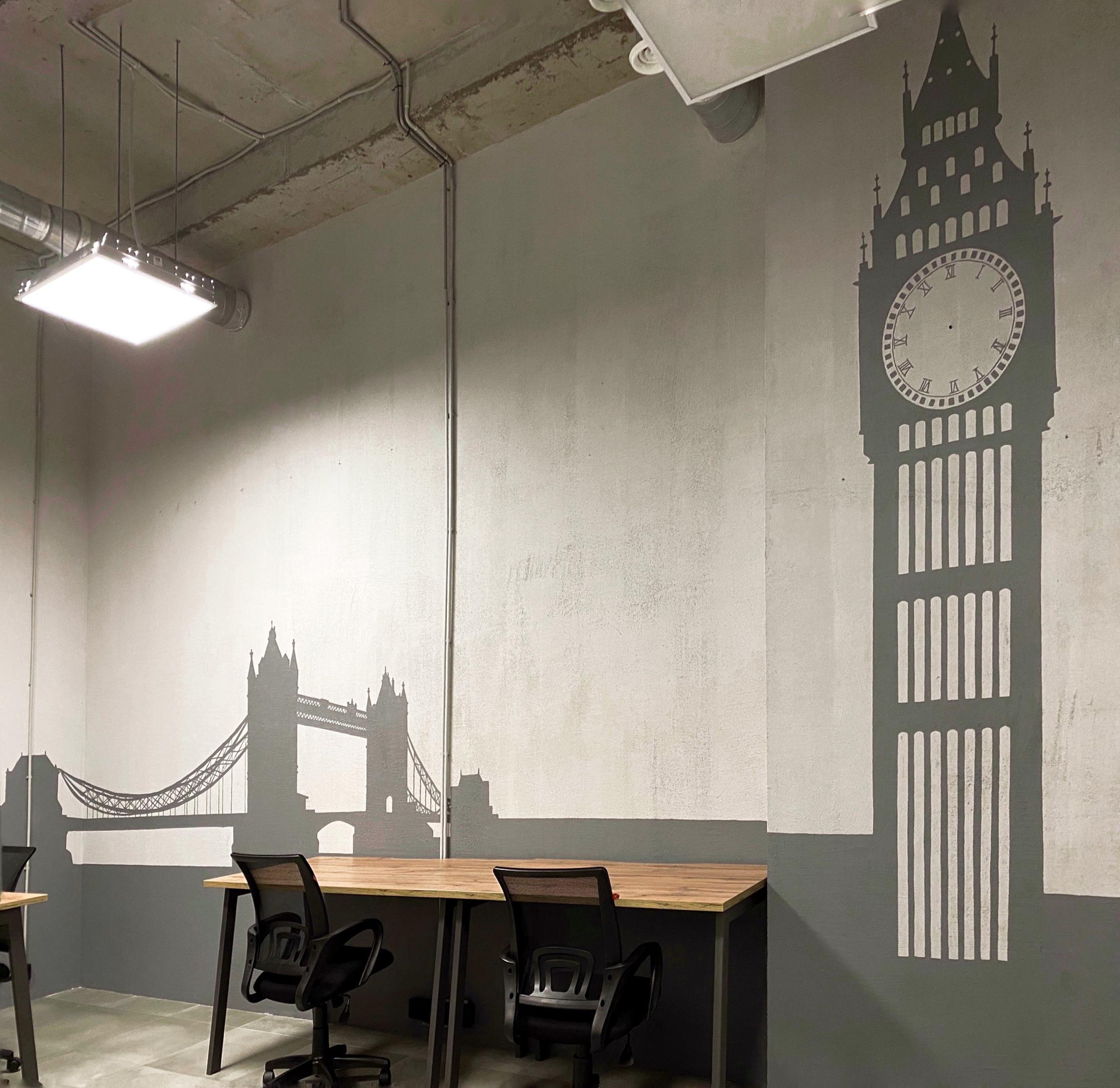 Разработка концепции коворкинга PAGE по адресу наб. Макарова, 60, Санкт-Петербург. Группа помещений располагается на первом этаже аппарт отеля «Dосklands». Уникальность в том, что каждая зона относиться к определенному городу, который содержит лучшее архитектурное предложения по развитию портовых доков. На стенах кабинетов расположены монохромные архитектурные фасады главных достопримечательностей городов, таких как Гамбург, Ротердам, Лондон, Буэнос-Айрес и Копенгаген. Что даёт дополнительную навигацию по рабочему пространству. Монохромное изображение создает необычный интерьер, визуально расширяя пространство, который не отвлекает от работы гостей коворкинга. Благодаря такому решению, можно добиться единой стилистической концепции и сделать рабочее пространство более современным. Роспись была создана акриловой краской премиум качества. Площадь росписи составляет более 100 м².